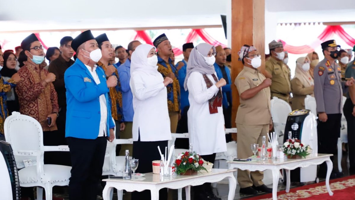 Gubernur Khofifah mengahadiri Sarasehan Pergerakan Bersama Gubernur Jawa Timur, yang diselenggarakan PKC PMII Jawa Timur di Pendopo Banyuwangi, Selasa (23/8/22). (Dok Pemprov Jatim).