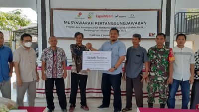 Tuban –harianjatim.com. Operator Lapangan Migas Banyu Urip, Blok Cepu, ExxonMobil Cepu Limited (EMCL) bersama mitra pendamping program, Lembaga Pemberdayaan Masyarakat ( LPM) Indonesia melaksanakan musyawarah pertanggungjawaban dan serah terima pembangunan infrastruktur di Desa Ngadirejo Kecamatan Rengel kabupaten Tuban, Jum’at Pagi (02/09/2022) di Balai Desa Ngadirejo