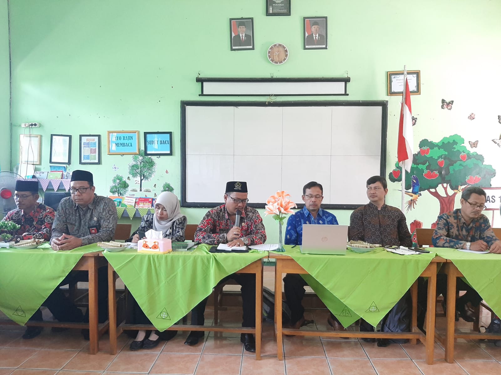 Dihadiri oleh seluruh Kepala Satker (Satuan Kerja) dan Kasi Penma (Kepala Seksi Pendidikan Madrasah), Pusdiklat Kemenag RI melakukan pendampingan Inovasi Madrasah di MIN 2 Tuban, Kamis (1/9/2022). Kegiatan ini bertujuan untuk memastikan alumni pelatihan mampu melakukan program inovasi yang sesuai dengan kebutuhan madrasahnya. Madrasah juga memiliki keunggulan tertentu yang berbeda dengan madrasah lainnya.