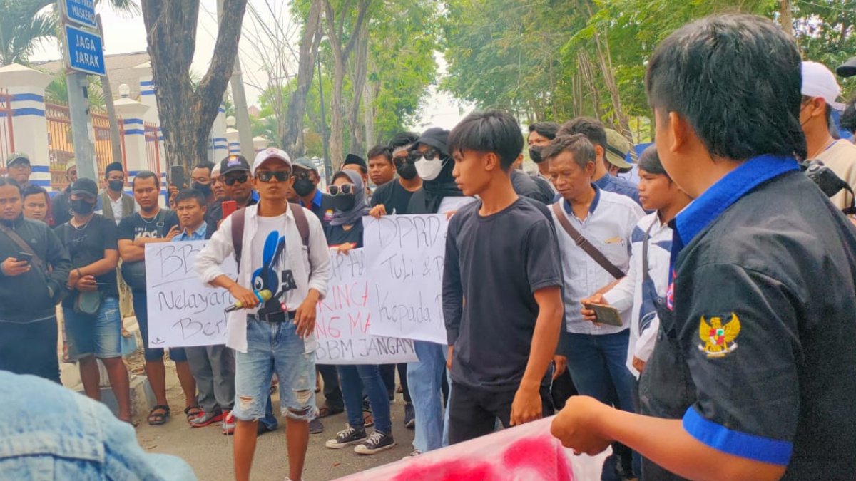 Saat aksi, mereka bergerak menuju Kantor DPRD membawa poster penolakan kenaikan harga BBM. Mereka menyampaikan aspirasi menggunakan pengeras suara.