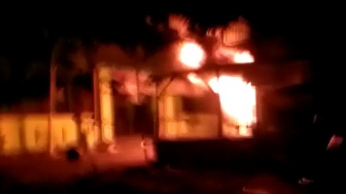 Kobaran api yang membakar toko di depan SMP 2 Kalianget (Foto : screnshot video)