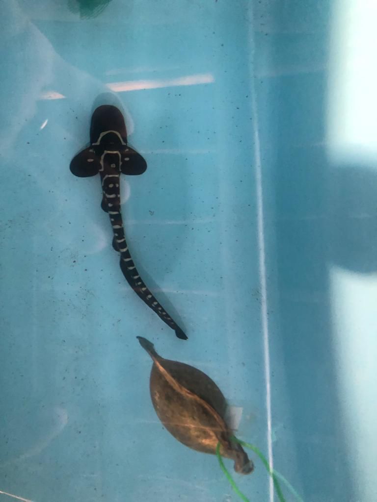 “Kemarin saya sudah mengecek sendiri kondisi anakan hiu, keduanya diidentifikasi sejauh ini sebagai betina tapi karena clasper (organ reproduksi jantan) kadang masih terlalu kecil untuk terlihat pada anakan yang baru beberapa hari umurnya, saya akan klarifikasi lagu dalam beberapa hari kedepan,” jelas Nesha.