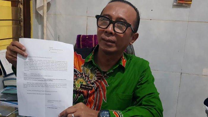 Ibnu Hajar, tunjukkan surat pengunduran dirinya sebagai calon anggota Dewan Pendidikan Kabupaten Sumenep (DPKS) periode 2021-2026, Rabu (1/12/2021). (Foto : tribunnews.com)
