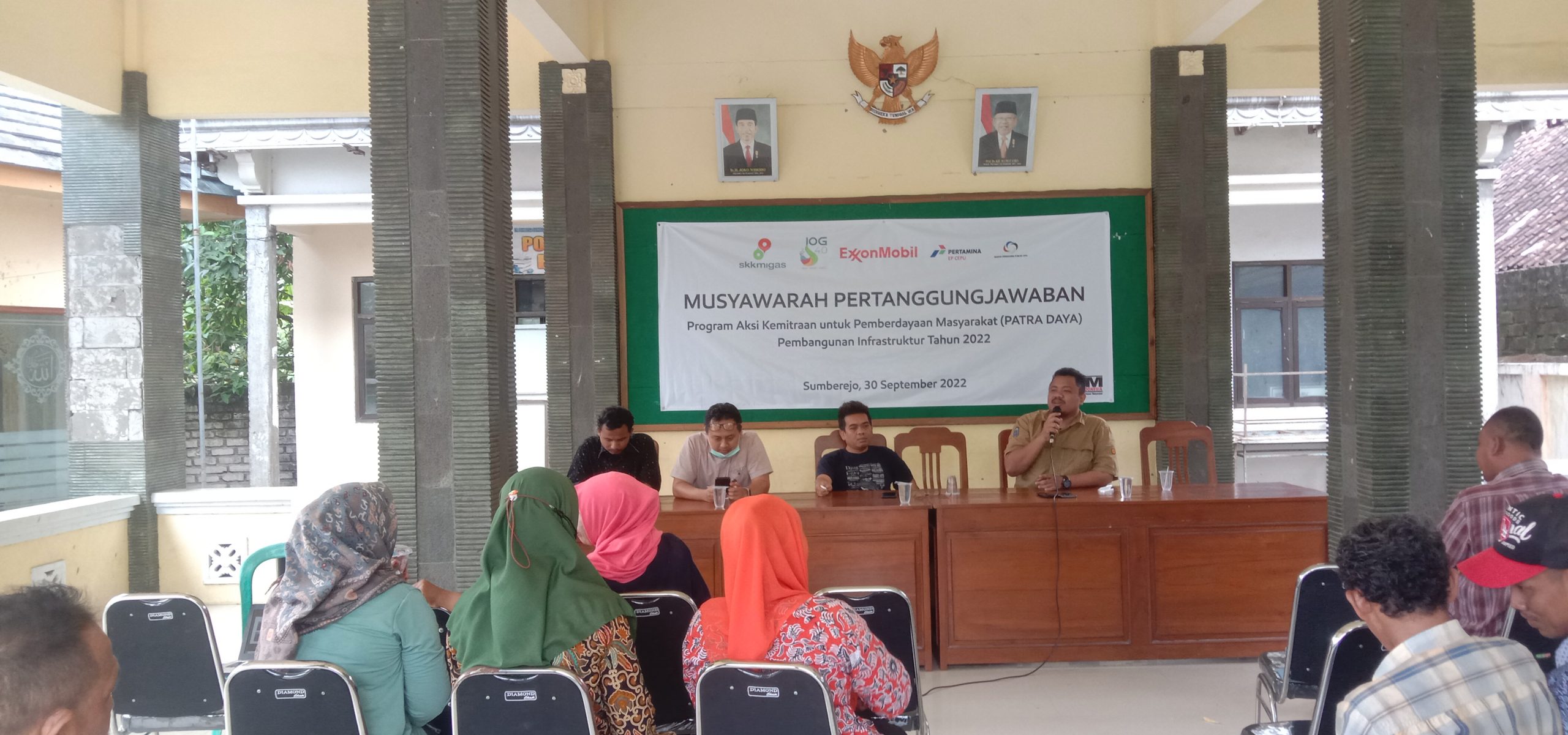 Tuban-harianjatim.com.Operator Lapangan Banyu Urip, Blok Cepu, ExxonMobil Cepu Limited (EMCL) bersama mitra pendamping program, LPM Indonesia melaksanakan musyawarah pertanggungjawaban dan serah terima pembangunan infrastruktur di Desa Sumberjo kecamatan Kecamatan Rengel Kabupaten Tuban melalui Program Aksi Kemitraan untuk Pemberdayaan Masyarakat (Patra Daya) Tahun 2022 di Balai Desa setempat, Jum’at (30/09/2022)