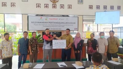 Tuban-harianjatim.com.Operator Lapangan Banyu Urip, Blok Cepu, ExxonMobil Cepu Limited (EMCL) bersama mitra pendamping program, LPM Indonesia melaksanakan musyawarah pertanggungjawaban dan serah terima pembangunan infrastruktur di Desa Rengel kecamatan Kecamatan Rengel Kabupaten Tuban melalui Program Aksi Kemitraan untuk Pemberdayaan Masyarakat (Patra Daya) Tahun 2022 di Balai Desa setempat, Jum’at (30/09/2022)