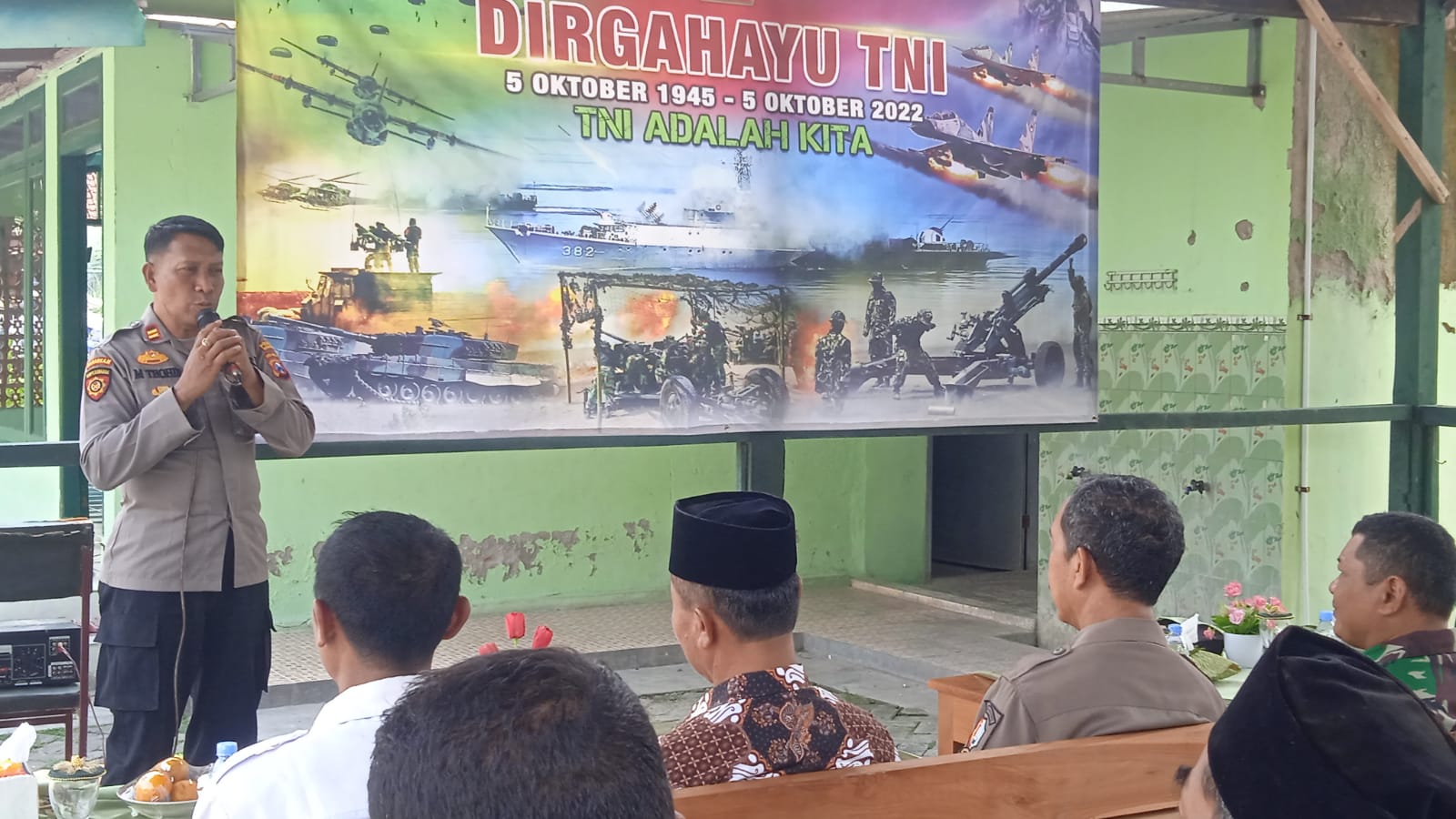 ” Dalam Kesempatan ini Kapolsek beserta seluruh anggota mengucapkan selamat hari ulang tahun TNI ke -77 sesuai dengan temanya TNI adalah Kita, semoga TNI selalu di hati kita semua dalam menjaga keamanan NKRI “