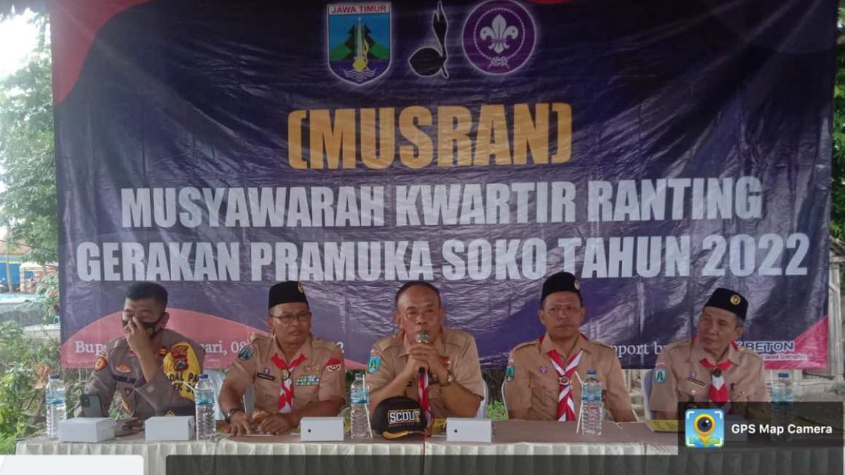 Beliau mengucapkan selamat bermusyawarah kepada seluruh peserta MUSRAN Gerakan Pramuka Kecamatan Soko Tahun 2022 Mudah-mudahan ini akan melahirkan pengurus yang handal dan mampu membawa organisasi Pramuka Kecamatan Soko selalu terdepan dan lebih baik dari pada Kwaran lain yang ada di Kabupaten Tuban