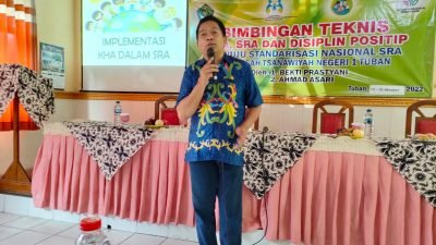 Tuban-harianjatim.com.Konvensi Hak Anak (KHA), Satuan pendidikan Ramah Anak (SRA), dan Disiplin Positif merupakan hak anak/siswa yang harus kita laksanakan. Disini hak-hak anak dilindungi oleh Kementerian Pemberdayaan Perempuan dan Perlindungan Anak (KPPPA), maka kita sebagai orang dewasa harus dapat membimbing, mendidik, memberi contoh yang baik. Disinilah akan terjadi penanaman karakter positip pada diri anak. Karena inilah, maka MTsN 1 Tuban yang telah menyandang gelar Madrasah Ramah Anak Nasional Tahun 2019, mengadakan Bimtek KHA, SRA dan Disiplin Positip Menuju standarisasi Nasional SRA selama 3 hari dari tanggal 13 hingga 15 Oktober 2022 dengan bimbingan Fasilitator Nasional, Bekti Prastyani dan Ahmad Asari.