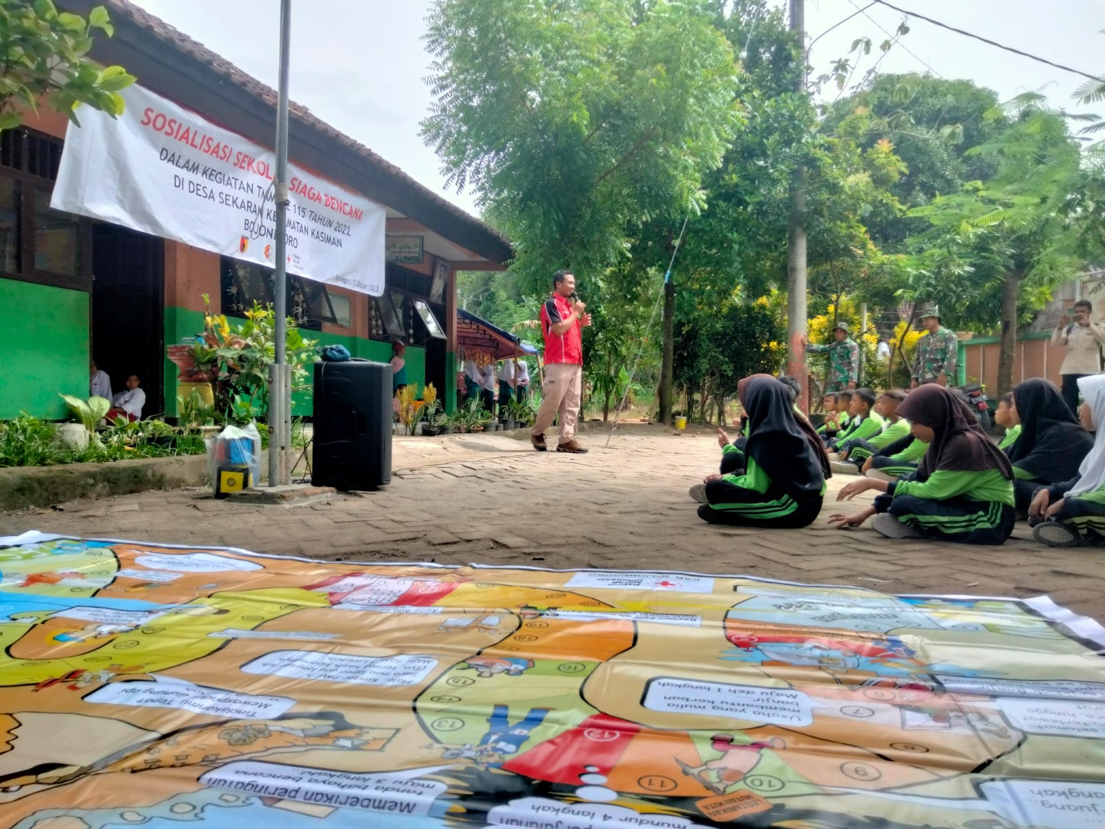 Bojonegoro -harianjatim.com. Sebagai upaya untuk meningkatkan kesadaran dan kesiapsiagaan kepada anak Sekolah dalam menghadapi terjadinya bencana alam, personel Satuan Tugas (Satgas) TNI Manunggal Membangun Desa atau TMMD ke- 115 Kodim 0813 Bojonegoro bersama Palang Merah Indonesia (PMI) dan Taruna Siaga Bencana (Tagana) Bojonegoro menggelar sosialisasi Sekolah Siaga Bencana Alam, Senin (17/10/2022).