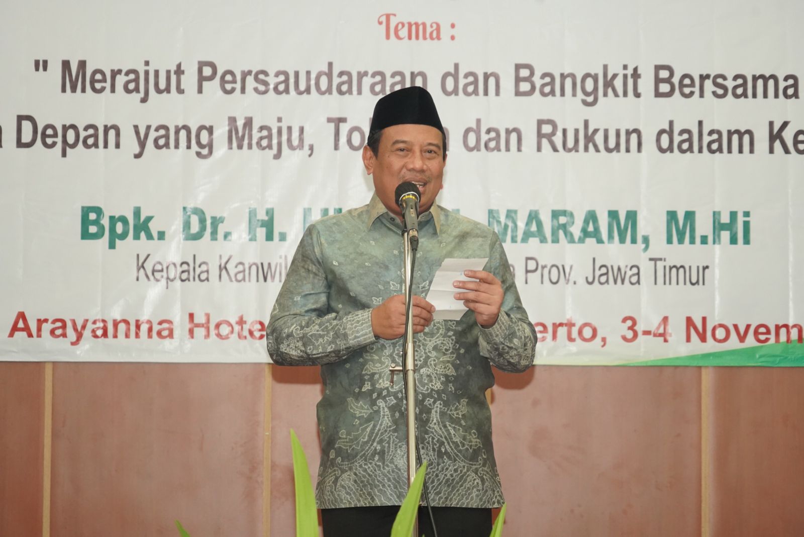 Tuban-harianjatim.com.Kepala Kantor Kementerian Agama Provinsi Jawa Timur, Husnul Maram, menyampaikan syukur yang mendalam, pasalnya Kemenag Jawa Timur bertubi-tubi mendapatkan kejuaraan. “Alhamdulillah pada even Musabaqoh Tilawatil Quran Nasional ke-XXIX di Banjarmasin berhasil menyabet juara umum, dari 85 peserta semua mendapatkan juara kecuali 5 peserta,” jelasnya saat acara Rapat Koordinasi Kanwil Kemenag Jatim di Trawas, Kamis malam (03/11/2022).