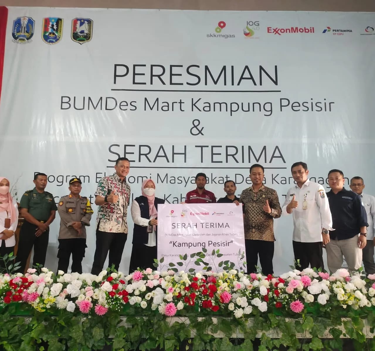 Tuban, 9 November 2022-Peresmian Pusat Oleh Oleh dan Jajanan BUMDES Mart Kampung Pesisir Karangagung dan serah terima Program Ekonomi Masyarakat Desa Karangagung Kecamatan Palang berhasil dilaksanakan dengan sukses dan meriah.