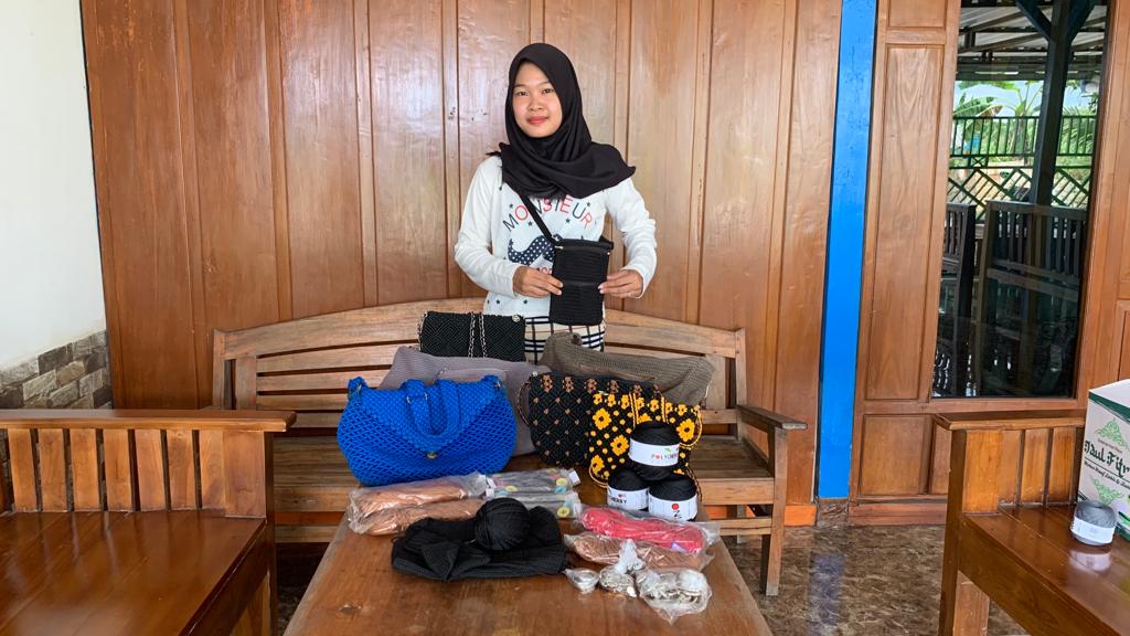 Bojonegoro -harianjatim.com. Keterbatasan tidak lantas membuat Nia Sari (20) warga Desa Gamongan Kecamatan Tambakrejo Kabupaten Bojonegoro Jawa Timur berhenti berkreasi. Ia dengan tekun membuat kerajinan tas yang terbuat dari benang rajut. Hasil jerih payahnya kini terbayar dengan pundi uang yang masuk dari penjualan karyanya.