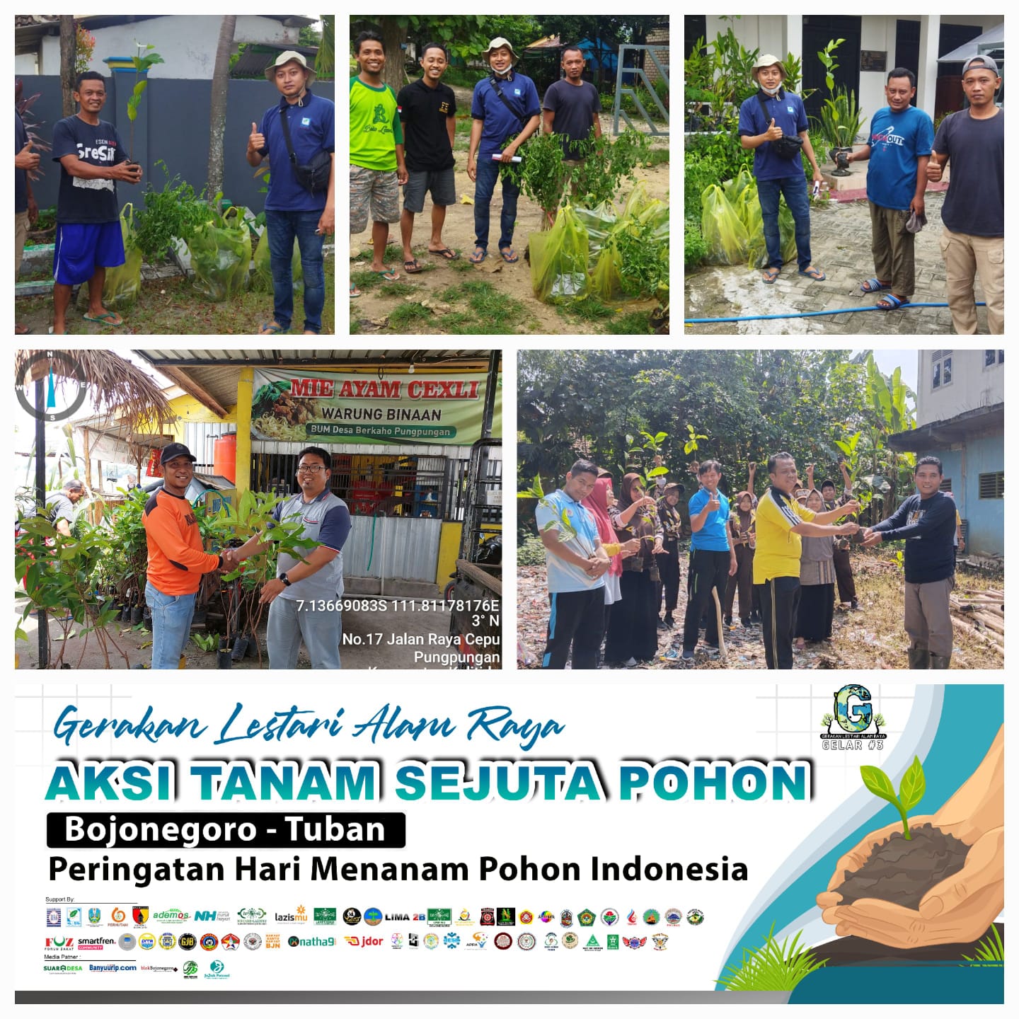 Hari ini (sabtu, 26/11/22), dilakukan persiapan dan droping bibit sejumlah total 10.000 bibit pohon dan buah. Di wilayah Bojonegoro di lokasi Desa Bobol, Desa Drenges dan Desa Pungpungan yang di koordinatori oleh Roy Burhanudin. Sedangkan di Wilayah Tuban yang di koordinatori oleh Imam Muqroni berada di 10 titik yaitu Desa Sokosari, Maibit, Trutup, Rengel, Glagahsari, Karangtinoto, Tambakrejo, Kanorejo, Kendalrejo, Menilo, dan kemungkinan masih ada tambahan titik lagi yang sedang dipersiapkan..