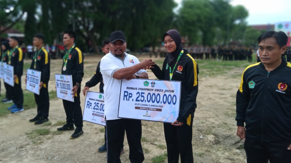 Adapun atlet penerima bonus tersebut meliputi Raja Dewantara dan Ayu Septia Ningrum yang merupakan atlet taekwondo masing-masing mendapatkan Rp 25 juta, Moh. Dimas Syafiih atlet Pabsi mendapatkan bonus Rp 65 juta, Mohammad Subaidi sebagai atlet Kick Boxing dengan reward Rp 25 juta, dan Achmad Fatjriadi Dwi Asyari sebagai atlet Pobsi dengan reward yang diterimanya sebesar Rp 22.500.000.