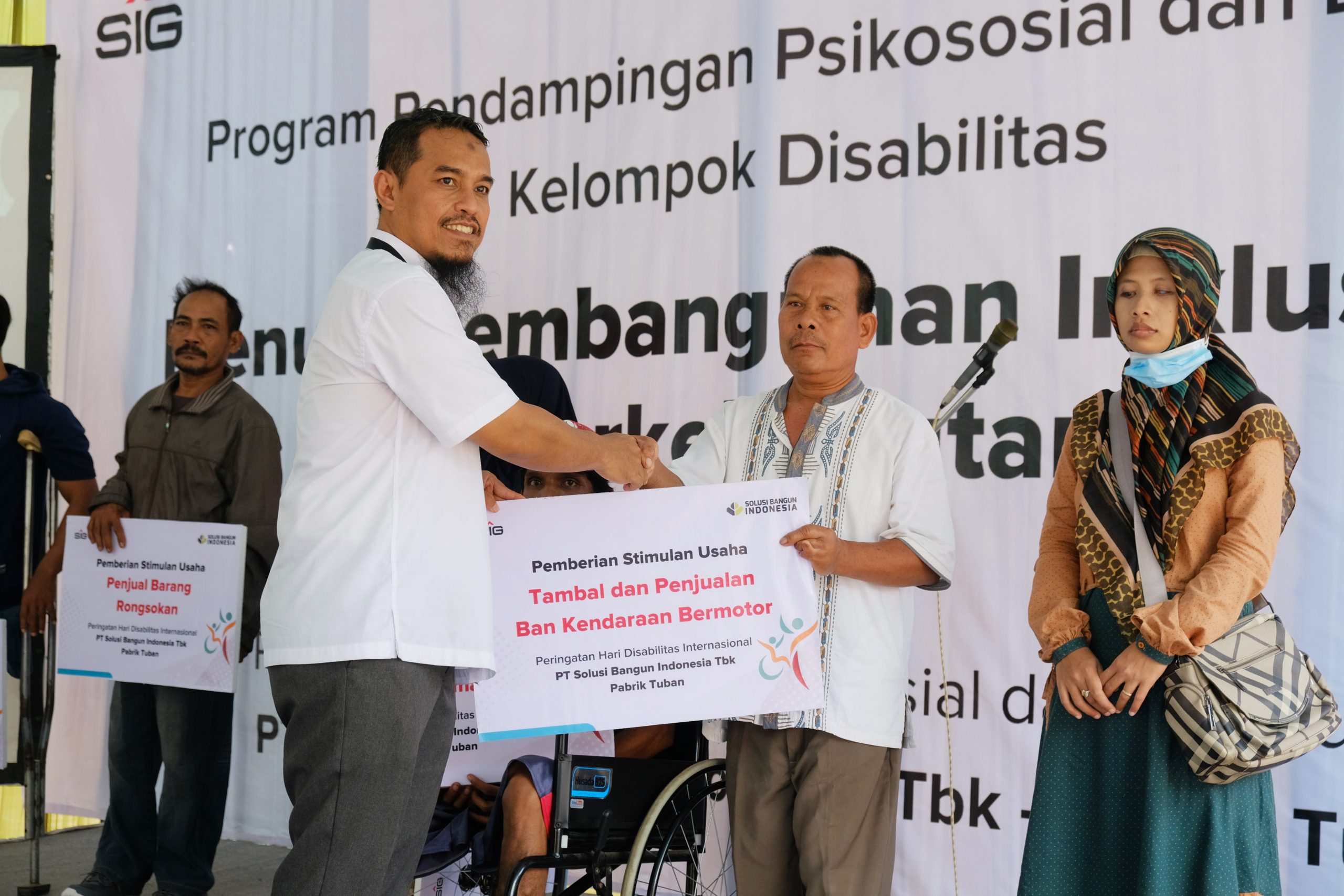 Puncak peringatan HDI 2022 ini dilakukan dengan pemberian stimulan kepada UMKM disabilitas secara simbolis oleh M.Yunani Rizzal, General Affair & Community Relations Manager SBI Pabrik Tuban, bersama Drs. Agus Wijaya, M.AP, Kepala Dinas Koperasi, Perindustrian, Perdagangan dan UMKM Kabupaten Tuban. Dalam sambutannya, Agus Wijaya menyatakan bahwa penyandang disabilitas layak untuk mendapatkan perhatian lebih, harus terfasilitasi untuk mempunyai tempat agar mereka bisa tetap berkreasi. “Langkah tersebut sebagai motivasi untuk mendorong rekan-rekan disabilitas agar tetap berkembang”, ujarnya.