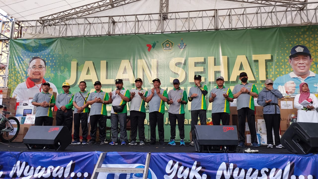 “Kemenag Kabupaten Tuban mensupport penuh kegiatan Jalan Sehat Kerukunan ini yang digelar sebagai rangkaian dari peringatan Hari Amal Bhakti (HAB) ke-77 Kementerian Agama,” ujarnya.