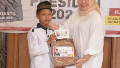 “Selain do’a bersama dan melantunkan sholawat nariah astuti juga memberikan bingkisan kepada anak- anak yang hadir. dengan do’a bersama ini kami berharap smoga dalam pemilu 2024 nanti Partai Gerindra Menang dan Prabowo Presiden”