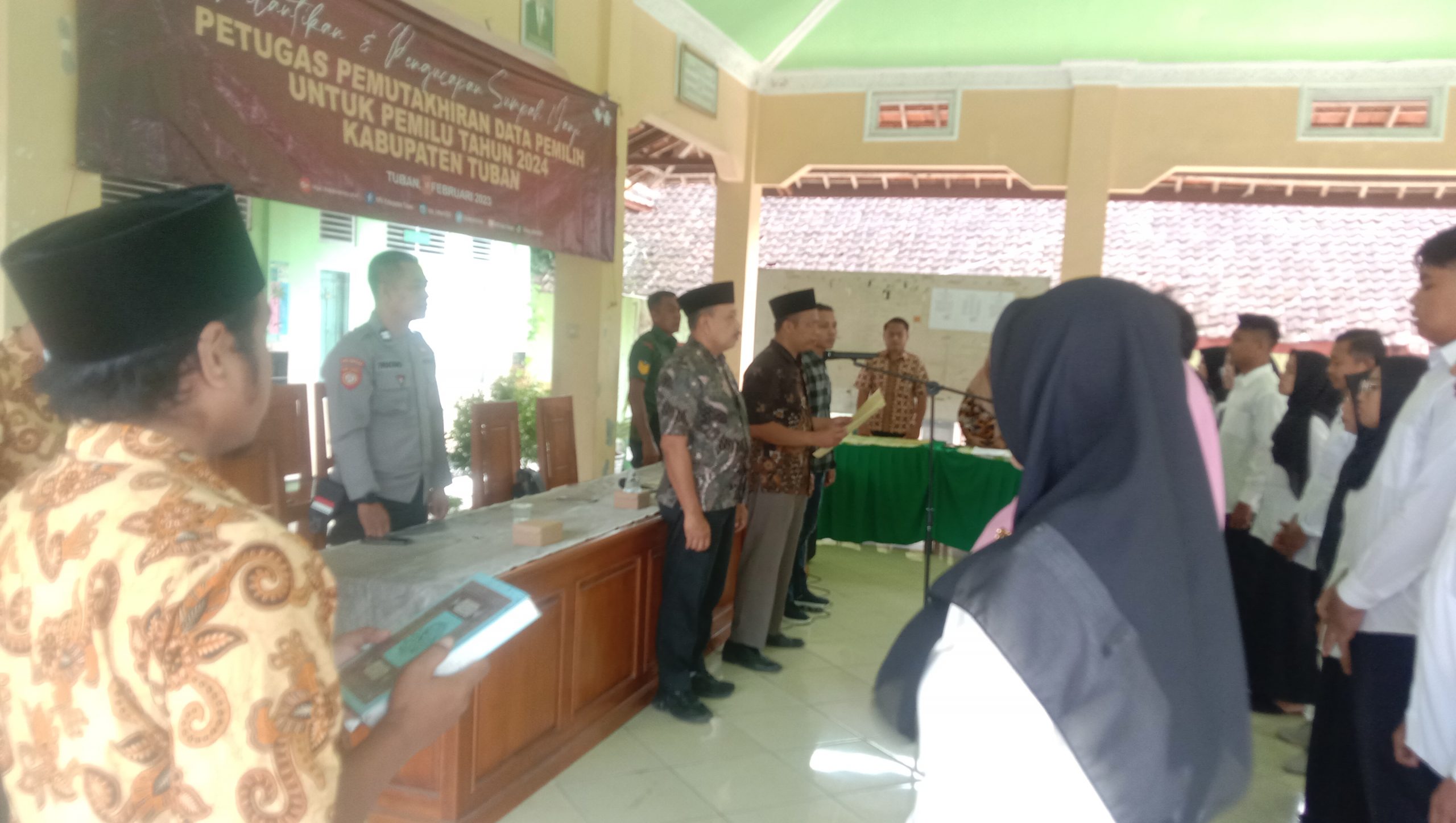 Tuban-harianjatim.com.Sebanyak 23 orang Petugas Pemutakhiran Daftar Pemilih (Pantarlih) untuk Pemilihan Umum (Pemilu) 2024 di Desa Sokosari Kecamatan Soko Resmi di Lantik dan ditetapkan , Minggu (12/02/2023)