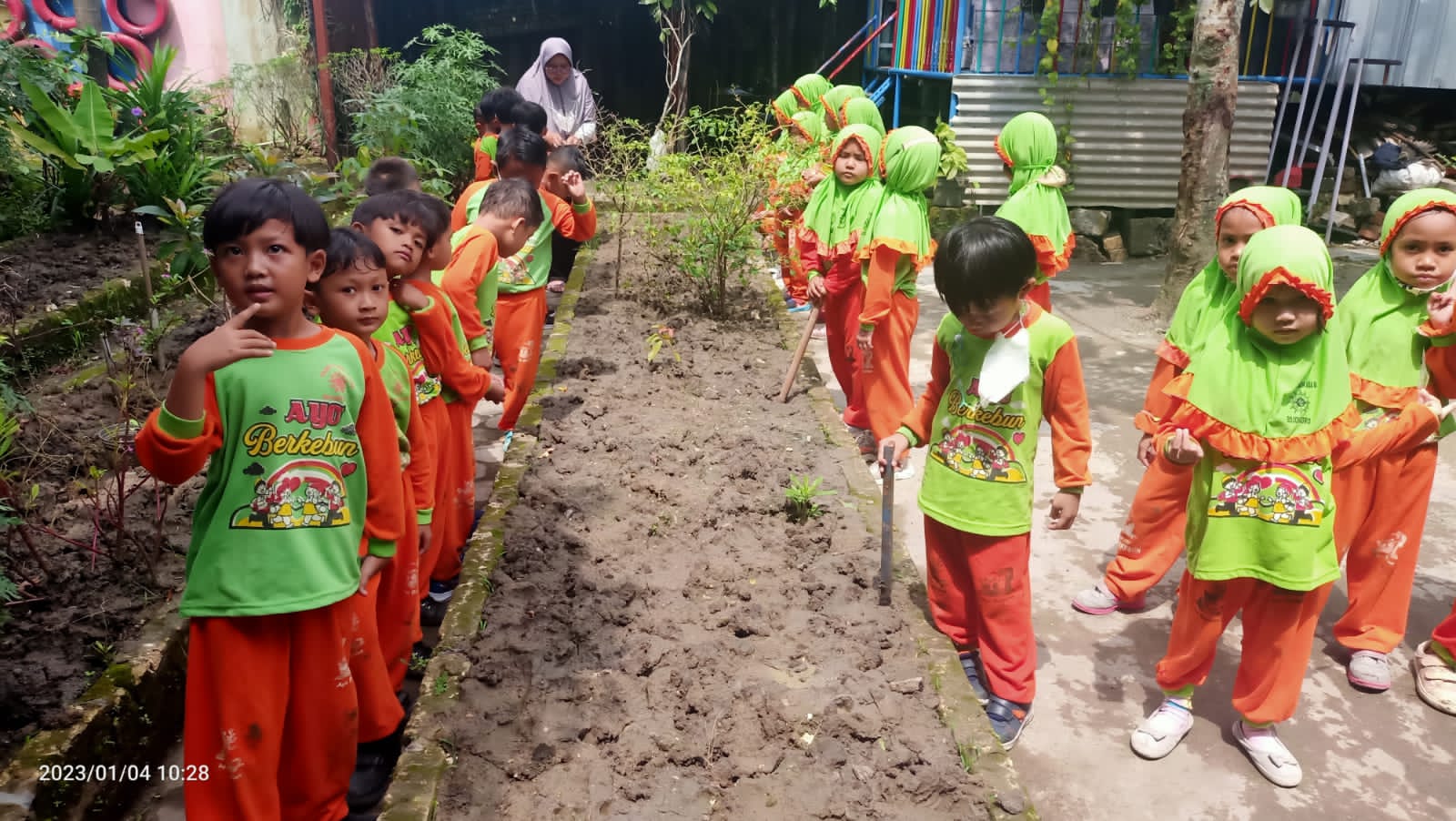 Salah satu upaya menanamkan karakter pada Anak Usia Dini, melalui peduli lingkungan bagi anak, melalui kegiatan pembelajaran berkebun. Berkebun merupakan suatu kegiatan yang dilakukan di alam terbuka atau di luar kelas caranya dengan mengajak anak, antara lain bercocok tanam, mengenal tumbuh-tumbuhan, dan cara merawat tanaman dengan baik.