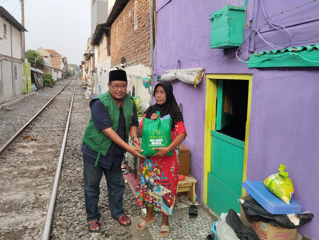 Sekitar jam 06.30 WIB, puluhan tim dari Filantropi NBI mulai membagikan paket sembako pada penerima yang sudah dilakukan pendataan sebelumnya. Mereka mulai bergerak dengan menyusuri pinggir rel kereta api, tepatnya di Tambak Gringsing Baru Tanjung Perak Surabaya. Di tempat itu, puluhan paket sembako dibagikan.