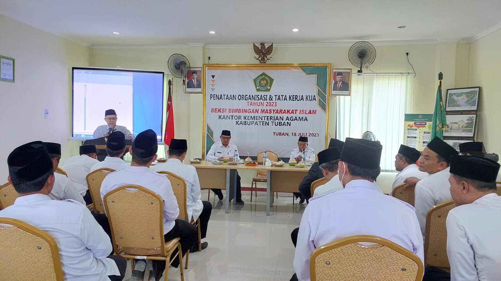 Sementara itu, Kepala Seksi Bimas Islam Kemenag Tuban, Mashari menjelaskan tujuan kegiatan ini adalah untuk memberikan pemahaman penataan organisasi dan tata kerja KUA kepada Kepala KUA. “Diharapkan agar ada kerjasama yang mantap antara KUA dan lintas sektoral selaku pemangku kepentingan untuk mencapai tujuan bersama,” pesannya.