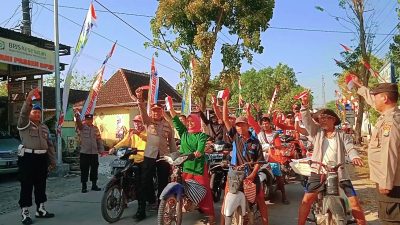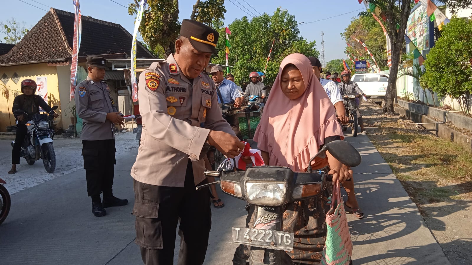 Semarakkan Momentum HUT RI ke 78, Kapolsek Tambakrejo Bagikan Ratusan Bendera Merah Putih