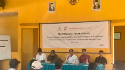 harianjatim.com- Bojonegoro.Sebagai salah satu tahapan kegiatan program Aksi Kemitraan Untuk Pemberdayaan Masyarakat (Patra Daya) Tahun 2023, dimana program tersebut merupakan salah satu Program Pengembangan Masyarakat (PPM) SKK MIGAS-EMCL. ALAS Institute Bojonegoro yang bermitra dengan ExxonMobil Cepu Limited (EMCL) Menggelar Musyawarah Pelaksanaan di Dua Kecamatan yaitu Desa Bangunrejo kecamatan Soko dan Desa Sumberejo kecamatan Rengel,Rabu (23/08/2023)
