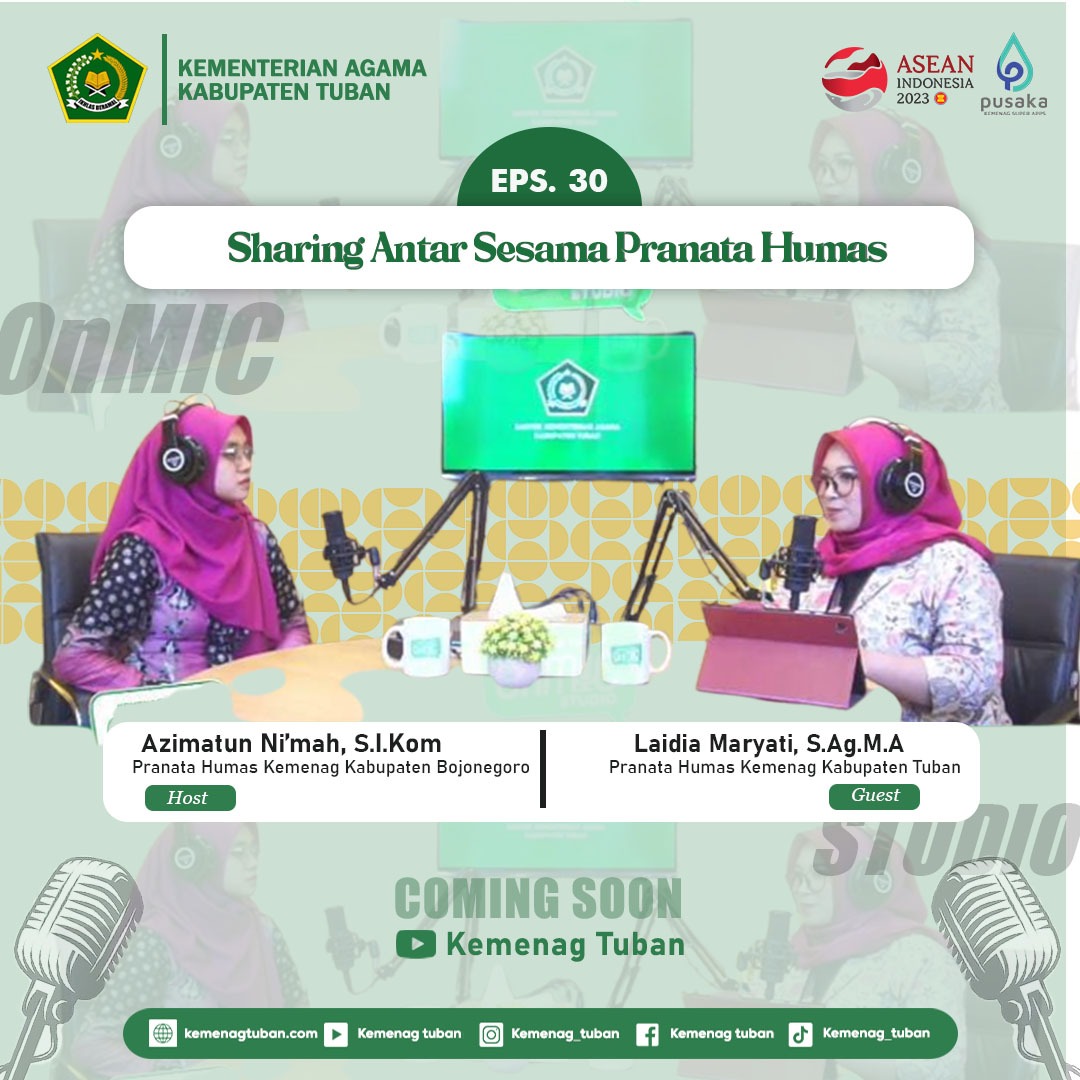 harianjatim.com- Tuban.Sering disebut sebagai ujung tombak manajemen informasi, jabatan Pranata Humas sangatlah penting keberadaannya. Laidia Maryati Pranata Humas Kementerian Agama Kabupaten Tuban menyampaikan Pranata Humas adalah ujung tombak organisasi untuk memberikan citra terbaik bagi organisasinya. “Seperti misalnya, ada sebuah kegiatan pembangunan mental ASN disini peran Humas membuat informasi mengenai hal itu untuk di publikasikan, baik melalui flayer, rilis dan juga dalam bentuk audio visual untuk membuat masyarakat mengetahui apa dan bagaimana kegiatan tersebut,” paparnya dalam tayangan podcast On Mic Studio Kemenag Tuban, Jumat (3/11/2023)