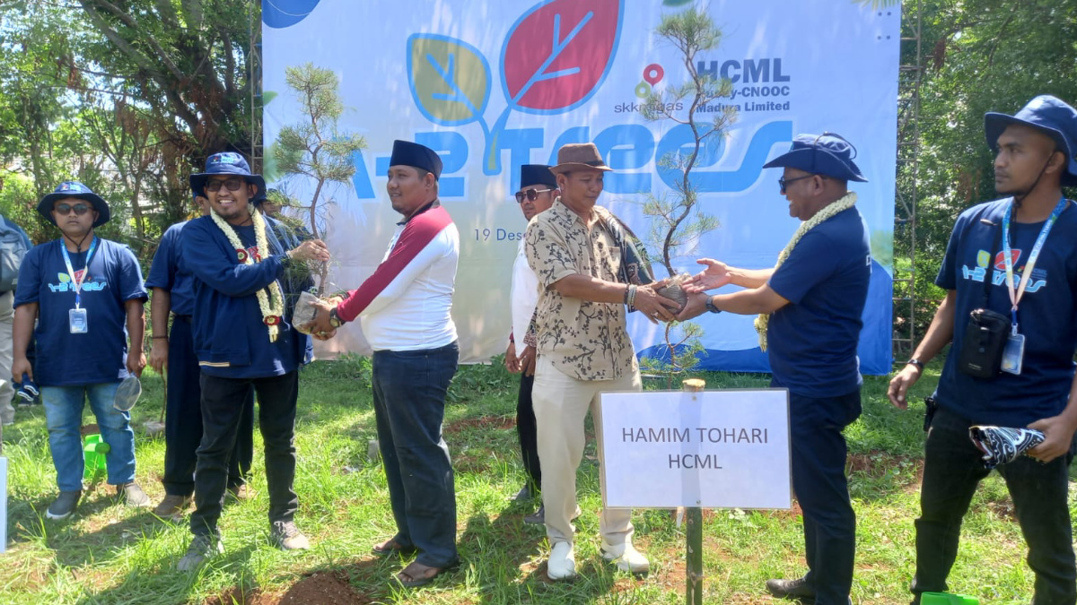 Manager Regional Office and Relation HCML, Hamim Tohari dan Bupati Sumenep Ahmad Fauzi Wongsojudo saat melakukan penanaman pohon cemara pada Festival Pesisir 2 di Pulau Giliyang, Kabupaten Sumenep. (foto: for harianjatim).