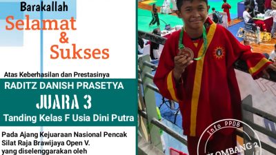 Dalam keterangan pers, Sabtu (13/01/2024) Raditz menjelaskan bahwa kejuaraan tersebut Raditz melawan dari beberapa siswa mewakili sekolah yang sebagian besar pesertanya dari wilayah Seluruh Indonesia baik dari provinsi Jawa Timur dan provinsi Sekitarnya, Prestasi yang dicapainya saat ini, tidak lepas dari perjuangan dan semangat dari teman-teman serta doa Orang Tua dan bapak ibu guru sehingga ia berhasil menjadi juara 3.
