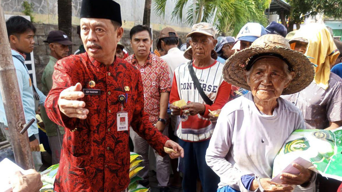 Ketua PMI Kabupaten Sumenep Edi Rasiyadi saat memberikan santunan. (foto: Sumenepkab).