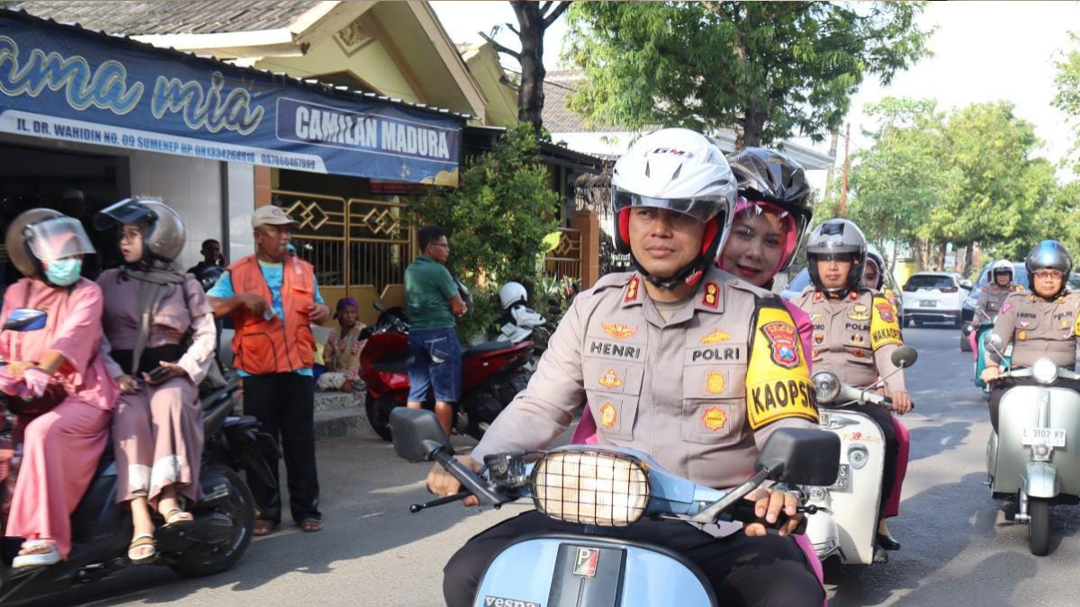 Ketua Bayangkari dan Kapolres Naik Vespa Sapa Warga Sumenep