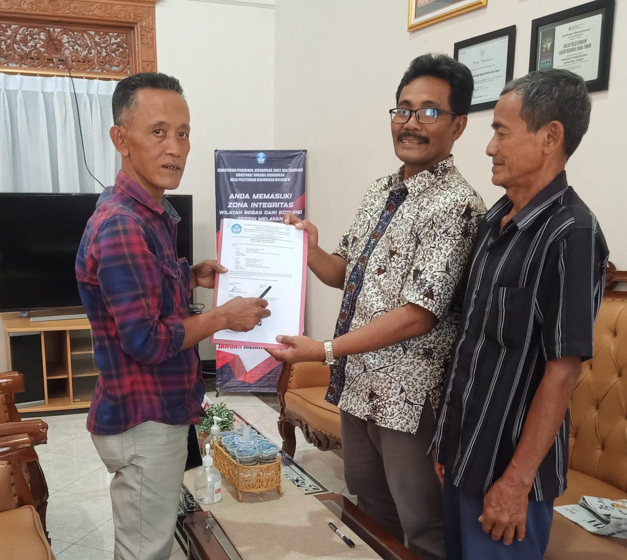 MOJOKERTO -Bertempat di Museum Trowulan Mojokerto, Kepala Balai Pelestarian Kebudayaan Wilayah XI Kemdikbud Ristek memberikan apresiasi kepada Drs.Bambabg HS (mantan Kepala SMPN 1 Kapas Bojonegoro) atas jasanya ikut melestarikan peninggalan budaya bangsa