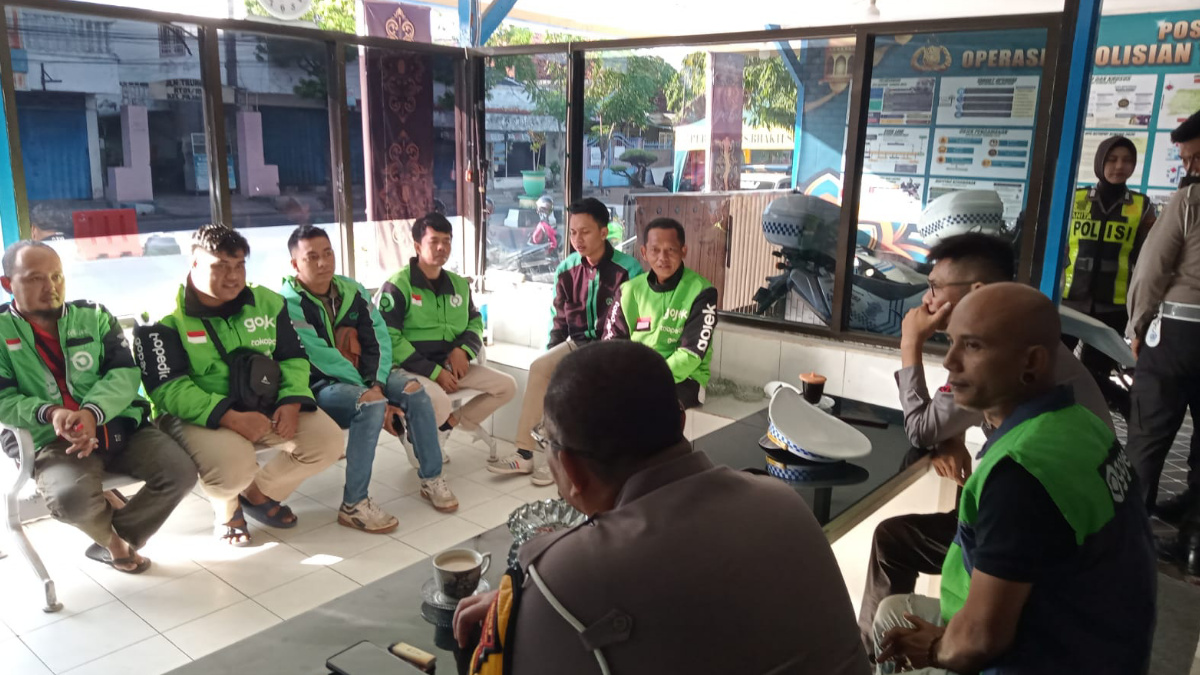 Pada kesempatan itu, mereka para ojek online sharing dan ngobrol bareng yang bersangkutan saat berkendara di jalan. Tak lupa, kiat keselamatan dalam berlalulintas disampaikan Kasat Lantas AKP Nasution kepada driver ojol untuk tetap berhati-hati di jalan dan tertib berlalulintas utama menggunakan helm bagi penumpang atau penggonceng.