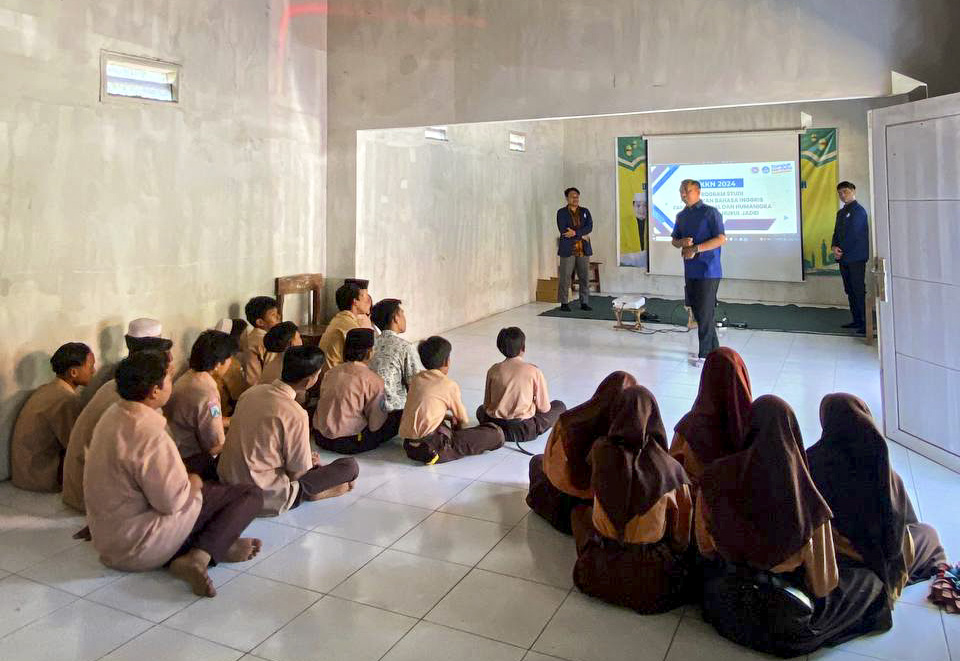 Tim KKN UNUJA tengah menyosialisasikan tentang pembelajaran berbasis digital kepada para siswa di Yayasan Darul Falah Sumberdawe.