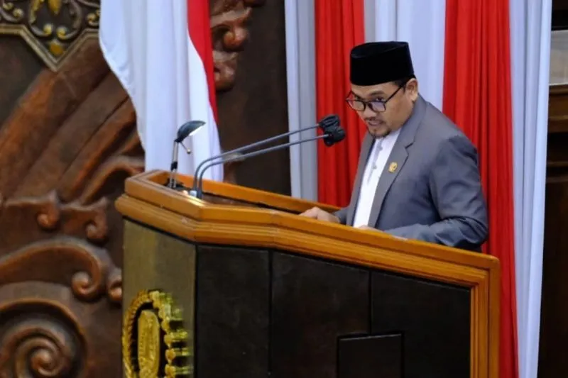 Juru bicara Fraksi PKS, Agus Cahyono, dalam rapat paripurna DPRD Jatim yang membahas Rancangan Peraturan Daerah tentang Pertanggungjawaban Pelaksanaan APBD Tahun 2024, di Surabaya, Rabu (14/5). (ANTARA/ HO - DPRD Jawa Timur)