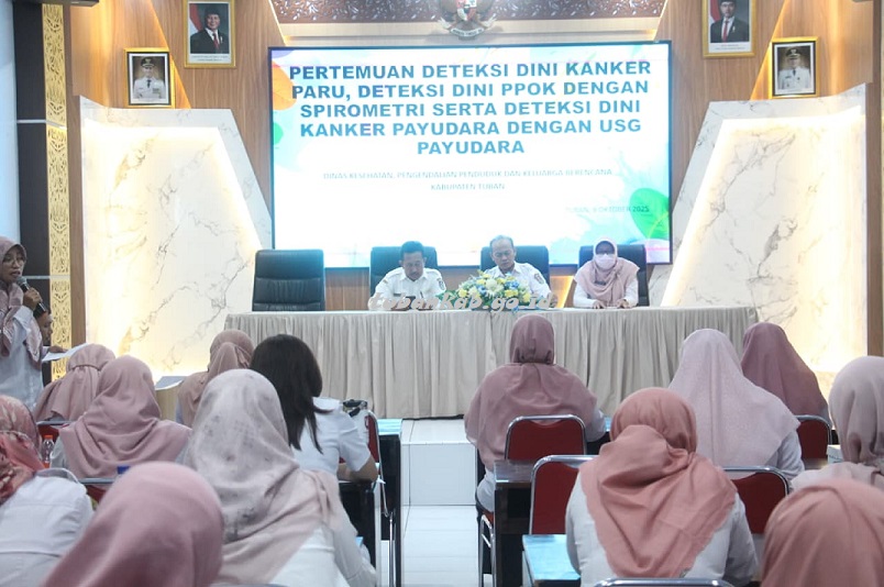 Tuban – Dinas Kesehatan, Pengendalian Penduduk, dan Keluarga Berencana (Dinkes P2KB) Kabupaten Tuban menggelar pertemuan deteksi dini penyakit tidak menular (PTM) Rabu (8/10) di Aula Aster Dinas setempat.