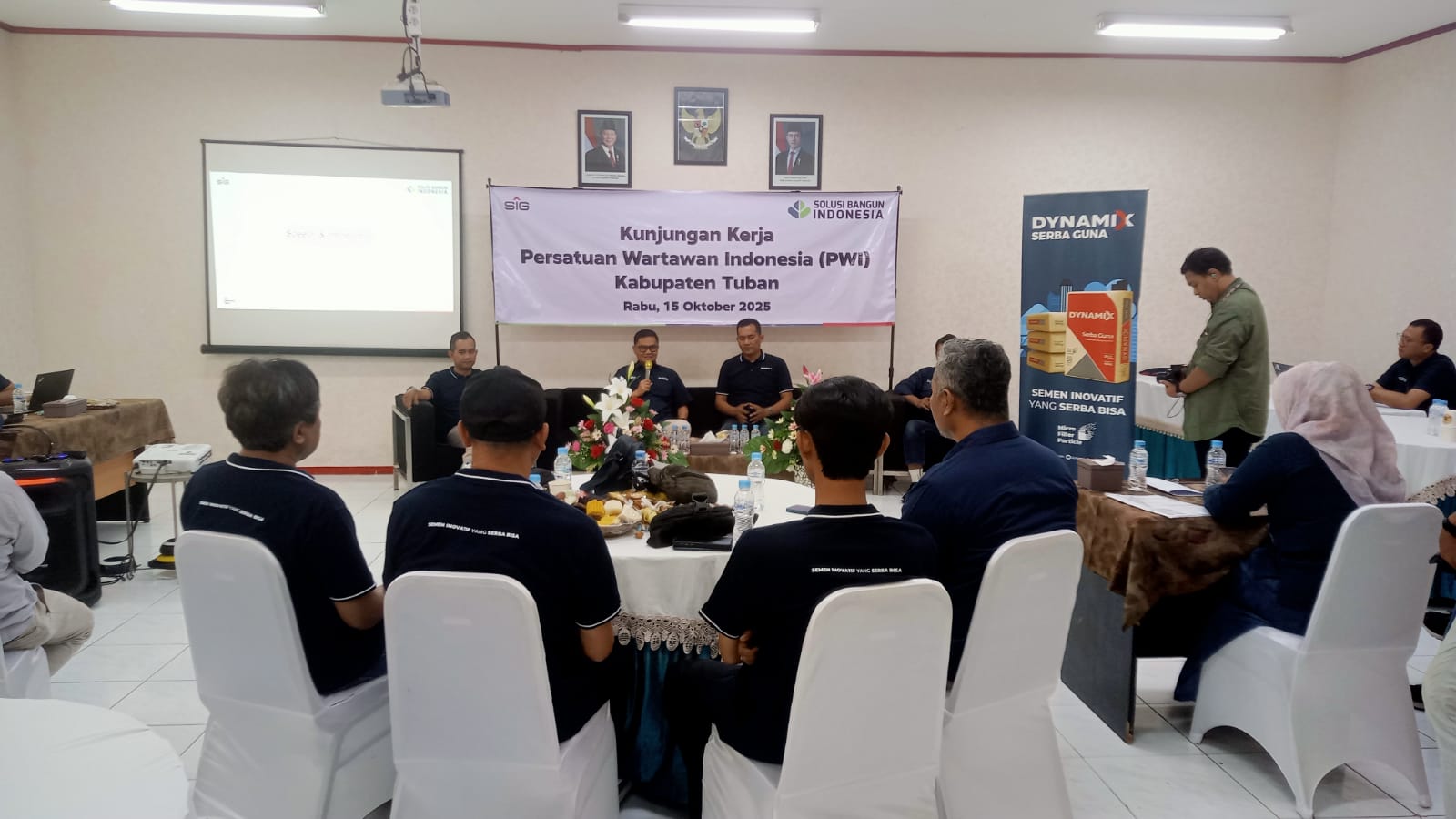 Persatuan Wartawan Indonesia (PWI) Kabupaten Tuban melakukan kunjungan kerja ke PT. Solusi Bangun Indonesia (SBI) Tbk – Pabrik Tuban di Desa Merkawang, Kecamatan Tambakboyo, Kabupaten Tuban, Rabu (15/10).