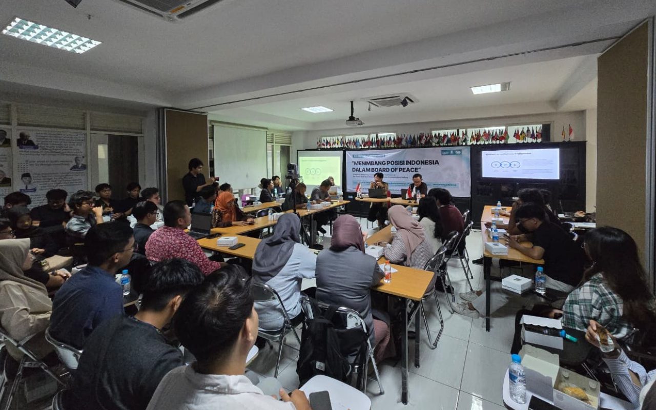 “Indonesia harus memosisikan diri sebagai jembatan, bukan sekadar pengikut. Dalam tataran BoP, kita tidak bisa menolak mentah-mentah, namun juga tidak bisa menerima begitu saja. Solusinya adalah keikutsertaan bersyarat,” papar Prof. Gonda di hadapan 70 peserta diskusi.