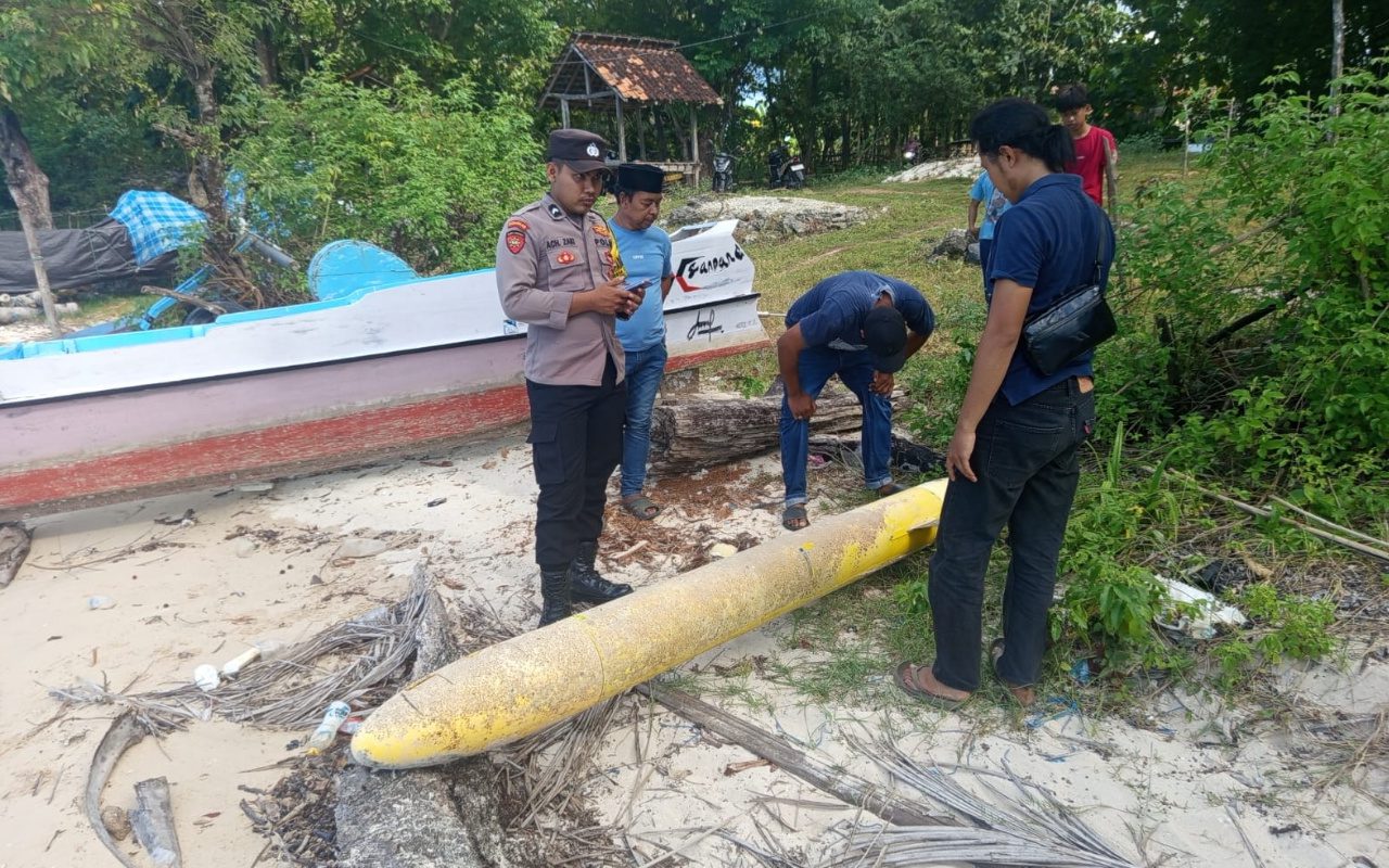 Benda berwarna kuning dengan diameter sekitar 30 sentimeter dan panjang kurang lebih 2 meter itu pertama kali ditemukan oleh warga bernama Heri saat hendak memeriksa perahunya di tepi pantai, sekitar pukul 14.40 WIB.