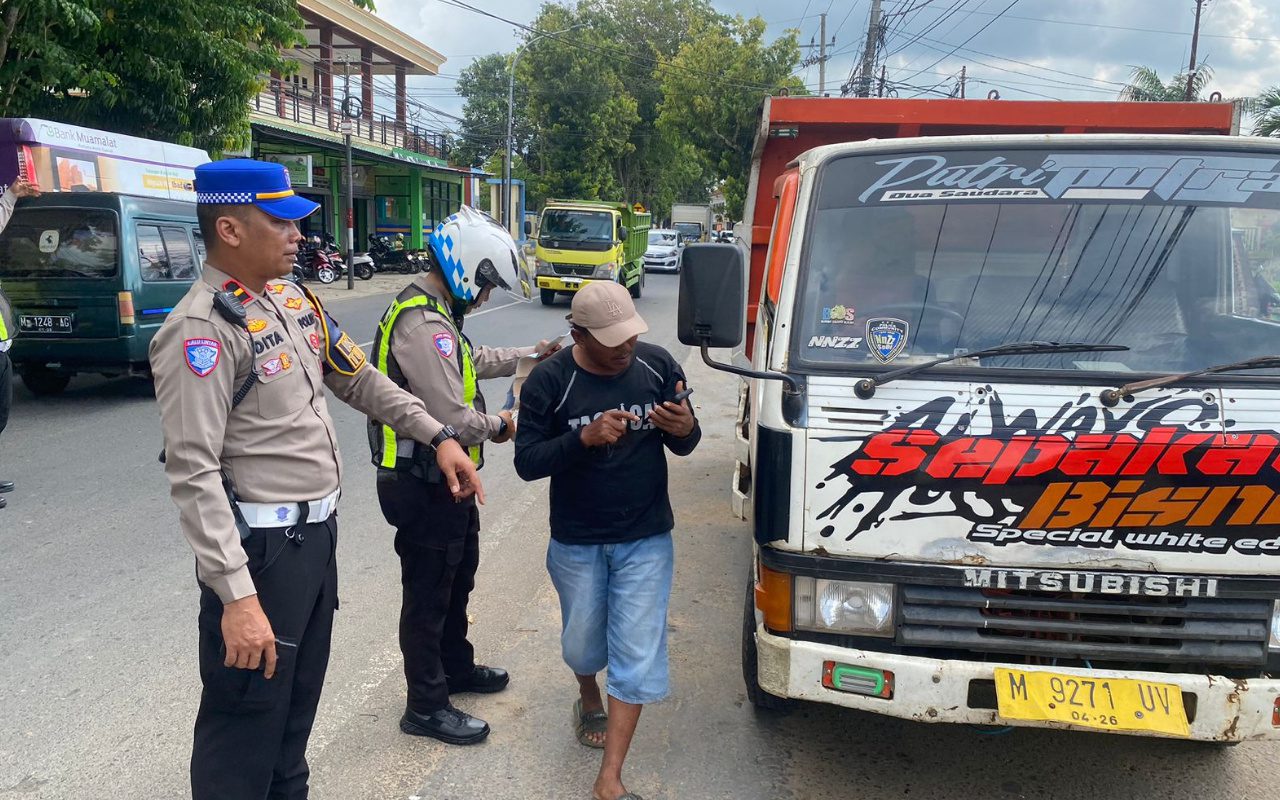 Dalam kegiatan tersebut, petugas memberikan delapan teguran kepada pengendara dan melakukan penilangan terhadap empat truk yang melanggar ketentuan keselamatan.